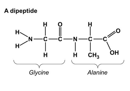 图 | 两个氨基酸脱水缩合形成二肽,同理类推还有三肽、四肽、五肽等,通常由 10~100 个氨基酸分子脱水缩合而成的化合物叫多肽(来源:quora.com)