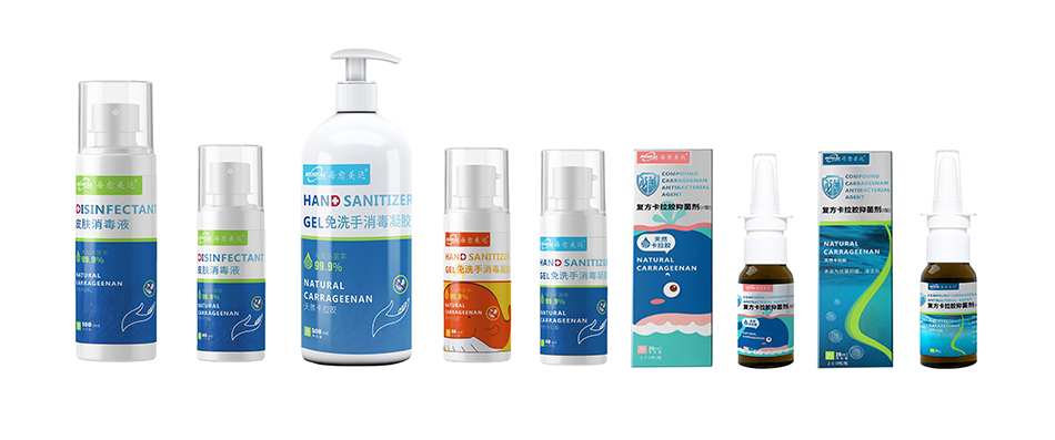 ☆ 每愈美达®皮肤消毒液 – 由乙醇与天然卡拉胶组成的消毒剂,适用于皮肤的消毒,可杀灭引起传染性疾病的多种病毒(包含新冠病毒)和金黄色葡萄球菌、铜绿假单胞菌、白色念珠菌等。因卡拉胶凝胶的成膜特性可锁住乙醇使其缓慢挥发,达到既能抗病毒又能长效抑菌功效。